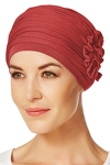 Plisowany, miękki dopasowany turban z kobiecym elementem ozdobnym.