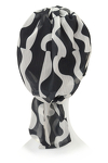 Lekki, przewiewny turban do codziennego użytku. Wzorzyste wykończenie świetnie pasuje na okres od wiosny do wczesnej jesieni.