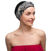 Wyjątkowy turban z ozdobną szarfą w piękne wzory. Kolorowa szarfa z delikatnego materiału w połączeniu z jednobarwną podstawą stanowi elegancki dodatek do każdego stroju. Mocowanie szarfy tylko w górnej części turbanu daje wiele możliwości stylizacyjnych.