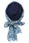 Wyjątkowy turban z ozdobną szarfą w piękne wzory. Kolorowa szarfa z delikatnego materiału w połączeniu z jednobarwną podstawą stanowi elegancki dodatek do każdego stroju. Mocowanie szarfy tylko w górnej części turbanu daje wiele możliwości stylizacyjnych.