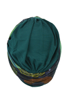 Lekki turban z szarfą. Upięcie nad czołem nadaje klasycznego kształtu, a fantazyjny wzór szarfy ożywi stylizację.