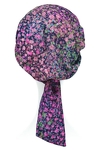 Turban w formie chustki, z krótkimi szarfami do wiązania oraz delikatnym drapowaniem po bokach. Jest bardzo wygodny, a wykonano go z naturalnych, lekkich materiałów.