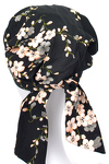 Turban w formie chustki, z krótkimi szarfami do wiązania oraz delikatnym drapowaniem po bokach. Jest bardzo wygodny, a wykonano go z naturalnych, lekkich materiałów.