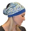 Turban w tylnej części posiada fantazyjnie uformowaną różę z materiału. Ma sporą ilość marszczeń, jest wygodny i elegancki. Idealnie sprawdza się do użytku codziennego.