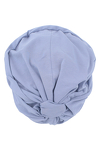 Miękki turban z jednolitego materiału. Zebranie materiału z tyłu głowy nadaje turbanowi ciekawy kształt. Posiada piankowe usztywnienie nad czołem.