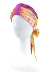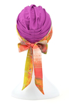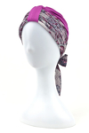 Wyjątkowo ciekawa propozycja turbanu: oprócz bazowej czapeczki w komplecie znajdują się dwie wzorzyste szarfy dopasowane kolorystycznie, aby cały zestaw dawał możliwość swobodnego wyboru stylizacji każdego dnia.