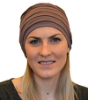 Turban posiada ozdobne, poziome przeszycia przypominające plisy. Bardzo lekki i komfortowy w noszeniu. Dostępny w wielu wersjach kolorystycznych.
