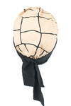 Turban z delikatnym drapowaniem na górze i długimi szarfami do samodzielnego ułożenia. Naturalne materiały zapewniają komfort użytkowania.