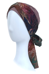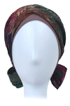 Wyjątkowy turban z ozdobną szarfą w piękne wzory. Kolorowa szarfa z delikatnego materiału w połączeniu z jednobarwną podstawą stanowi elegancki dodatek do każdego stroju. Mocowanie szarfy tylko w górnej części turbanu daje wiele możliwości stylizacyjnych.