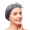 Wyjątkowy turban z ozdobną szarfą w piękne wzory. Kolorowa szarfa z delikatnego materiału w połączeniu z jednobarwną podstawą stanowi elegancki dodatek do każdego stroju. Mocowanie szarfy tylko w górnej części turbanu daje wiele możliwości stylizacyjnych.