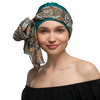 Wyjątkowy turban z ozdobną szarfą w piękne wzory. Kolorowa szarfa z delikatnego materiału w połączeniu z jednobarwną podstawą stanowi elegancki dodatek do każdego stroju. Mocowanie szarfy tylko w górnej części turbanu daje wiele możliwości stylizacyjnych.