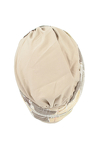 Szeroka, wzorzysta szarfa ożywia jednolitą podstawę turbanu.