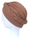 Ozdobny element wokół turbanu przypomina wiązanie warkocza. Wygląd tego modelu jest uroczy i wizualnie delikatny. Gładki, jednolity turban Corsica jest wyprodukowany z naturalnych i elastycznych materiałów. Łatwo dopasowuje się do kształtu głowy, ale nie uciska jej. Dzięki temu można nosić go komfortowo przez wiele godzin.