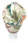 Bardzo wygodny turban z jednym, niewielkim elementem dekoracyjnym w postaci dwóch skręconych nad czołem pasków materiału.