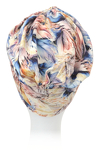 Bardzo wygodny turban z jednym, niewielkim elementem dekoracyjnym w postaci dwóch skręconych nad czołem pasków materiału.