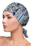 Chusta z ciekawym drapowaniem w górnej i dolnej części oraz krótkimi ozdobnymi szarfami do zawiązania. Prosta i niezobowiązująca, wygodna zarówno do użytku domowego jak i na spotkania towarzyskie.