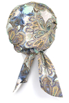 Turban w formie chustki, z krótkimi szarfami do wiązania oraz delikatnym drapowaniem po bokach. Jest bardzo wygodny, a wykonano go z naturalnych, lekkich materiałów.