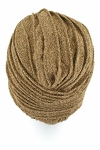 Turban przygotowany z myślą o ochronie głowy w chłodniejsze dni. Elastyczne tkaniny zapewniają wygodę noszenia przed dłuższy czas bez obaw o to, że Gold zsunie się on nieoczekiwanie w trakcie codziennych obowiązków. Przód turbanu to ozdobne połączenie pasm materiału wykorzystanych do jego uszycia, natomiast tył to estetyczne marszczenie. Fałdy materiału dookoła turbanu nadają potrzebnej objętości.