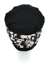 Elegancki, acz nienachalny turban łączący gładką tkaninę z dopasowanym wzorzystym odpowiednikiem.