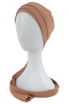 Oryginalnym dodatkiem w tym modelu turbanu jest długa szarfa przyszyta do czapeczki. Można owinąć ją wokół głowy, aby turban był jeszcze cieplejszy, miał większą objętość i zachwycał swoim wyglądem.