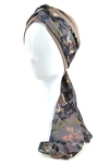 Bardzo ładny i elegancki zestaw, który składa się z turbanu oraz dwóch szarf. Motywy na szarfach zostały dopasowane kolorystycznie do gładkiej czapeczki. Dzięki temu można uzupełniać swoje codzienne stylizacje o ciekawe detale.