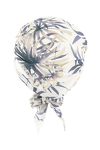 Turban z delikatnym drapowaniem na boku oraz krótkimi szarfami do wiązania. Prosty do ułożenia, przewiewny i wygodny turban z daszkiem.