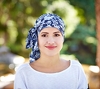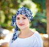 Turban z ozdobnym drapowaniem na boku i długimi szarfami do samodzielnego wiązania. Jest wygodny w użytkowaniu i pozwala na stworzenie wielu ciekawych stylizacji.