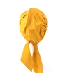 Turban z ozdobnym drapowaniem na boku i długimi szarfami do samodzielnego wiązania. Jest wygodny w użytkowaniu i pozwala na stworzenie wielu ciekawych stylizacji.
