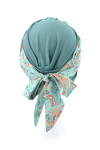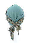 Wyjątkowo ciekawa propozycja turbanu: oprócz bazowej czapeczki w komplecie znajdują się dwie wzorzyste szarfy dopasowane kolorystycznie, aby cały zestaw dawał możliwość swobodnego wyboru stylizacji każdego dnia.
